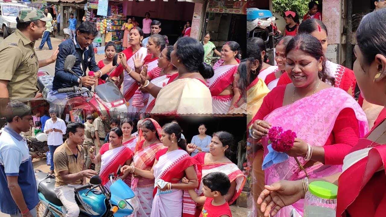দাসপুরের মহিলারা গোলাপ ও চকলেট দিলেন বাইক চালকদের