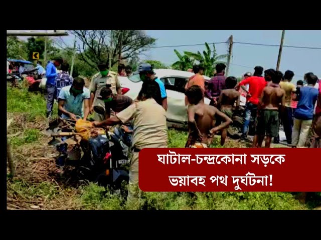 চন্দ্রকোণার মুন্ডুমালায় ভয়াবহ পথদুর্ঘটনা আহত ৪। মালবাহী ট্রাকের সাথে প্রাইভেট কারের ধাক্কা তার জেরে পাশে থাকা মোটরসাইকেল আরোহী ছিটকে পড়ে রাস্তার ধারে। আহতদের পাঠানো হল হাসপাতালে। ঘটনাটি ঘটে চন্দ্রকোণা থানার চন্দ্রকোণা পৌরসভার ৬ নং ওয়ার্ড মুন্ডুমালা এলাকায় ঘাটাল-চন্দ্রকোণা রাজ্যসড়কে।ঘটনায় বরাত জোরে রক্ষা প্রাইভেট কারে থাকা তিনজন ও একজন বাইক আরোহী। তবে দুমড়েমুচড়ে গেছে প্রাইভেট কার। জখম হয়েছেন গাড়ির মধ্যে থাকা আরোহীরাও। পুলিশ সূত্রে জানা যায়,আজ ৮ জুন মঙ্গলবার দুপুর ১২টার আশপাশে ঘাটাল থেকে চন্দ্রকোণার দিকে যাচ্ছিল একটি মাল বোঝাই ট্রাক,উল্টো দিক আসা থেকে অর্থাৎ ঘাটালগামী একটি প্রাইভেট কার ট্রাকের ধাক্কায় ছিটকে পড়ে রাস্তার ধারে। সেই সময়ই পাশেই রাস্তার ধার দিয়ে যাচ্ছিল এক বাইক আরোহী,প্রাইভেট কারটি ছিটকে গিয়ে ধাক্কা মারে বাইক আরোহীকে।রাস্তার ধারে ছিটকে পড়ে বাইকটিও,ঘটনায় বরাত জোরে প্রাণে বেঁচেছেন সকলেই। খবর পেয়ে ঘটনাস্থলে পৌঁছে চন্দ্রকোণা থানার পুলিশ আহতদের উদ্ধার করে চন্দ্রকোণা হাসপাতালে পাঠায়।একেবারে দুমড়ে মুচড়ে গিয়েছে প্রাইভেট কারটি।চন্দ্রকোণা থানার পুলিশ প্রাইভেট কার,ট্রাক ও বাইকটিকে উদ্ধার করে নিয়ে যায়।ভয়াবহ এই দুর্ঘটনার জেরে সাময়িক যানজটের সৃষ্টি হলেও,পুলিশ তা সামাল দেয়।একেই দুটি বাঁক রয়েছে ওই এলাকায়,তারউপর অতিরিক্ত গতি থাকায় এই ঘটনা বলে অনুমান প্রত্যক্ষদর্শীদের।